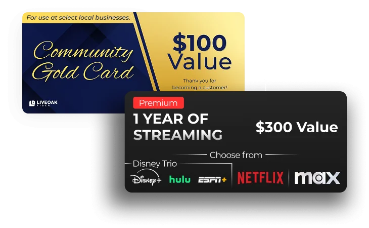 Fiber internet service will revolutionize your online experience. It is the fastest, most reliable, and most powerful way to access high-speed internet. Not only does fiber optic provide data transmission at lightning-fast speeds, but it also has higher bandwidth than traditional cable, making it ideal for streaming, gaming, and connecting. Ready to revolutionize your online experience? Connect with us and be the first to know when LiveOak Fiber is available in your neighborhood.
